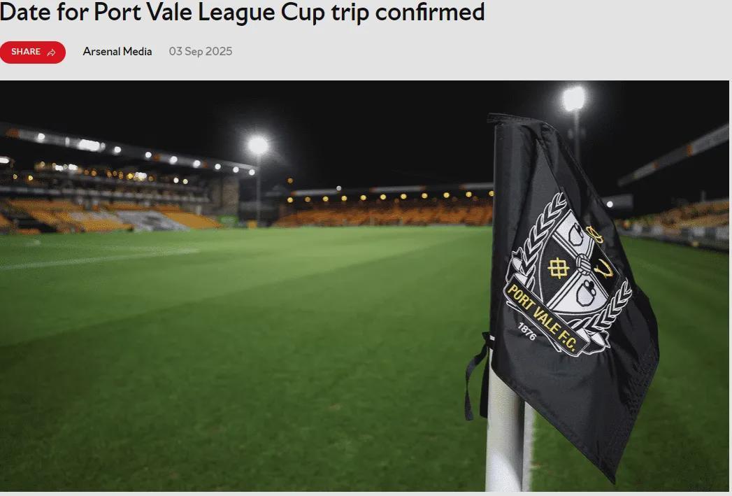 官方:阿森纳宣布联赛杯第三轮对韦尔港的比赛将在当地时间9月24日周三进行,枪手客场作战。